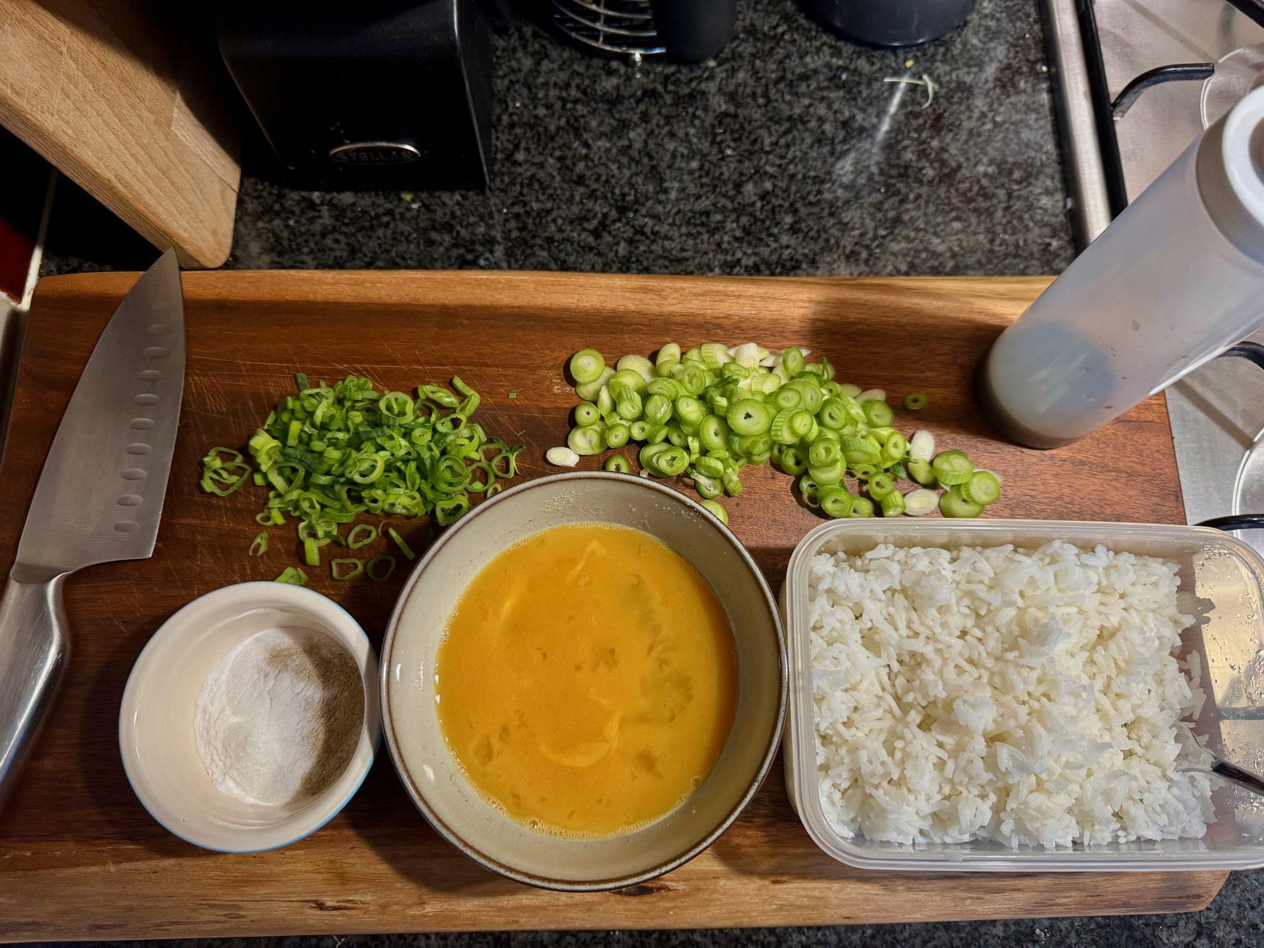 You will also want to be specific about the rice you use! Good fried rice requires the rice to be dry in order to achieve that crispiness and caramelisation. You will get the best results by using rice that was cooked the day before and allowed to dry out. You can cheat this by cooking rice on the day, spreading out on a sheet or tray and leaving to dry. This won’t give quite as good results but it’s a fine solution in a pinch. Alternatively, supermarket microwave rice packets actually work really well too! You will likely find that these are not very cost efficient, but it works.
