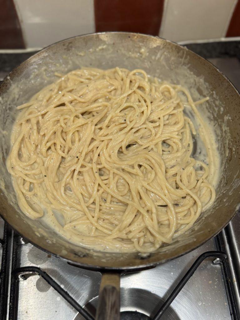 This is a recipe that aims to be authentic. This means it is very minimal and specific in it’s ingredients. Some people like to use onions or garlic, and many like to put cream in their sauce. This is fine if you want to, but it isn’t carbonara in that case. All the creaminess you should need will come from the emulsificaion of the cheese and egg yolk into starchy pasta water.