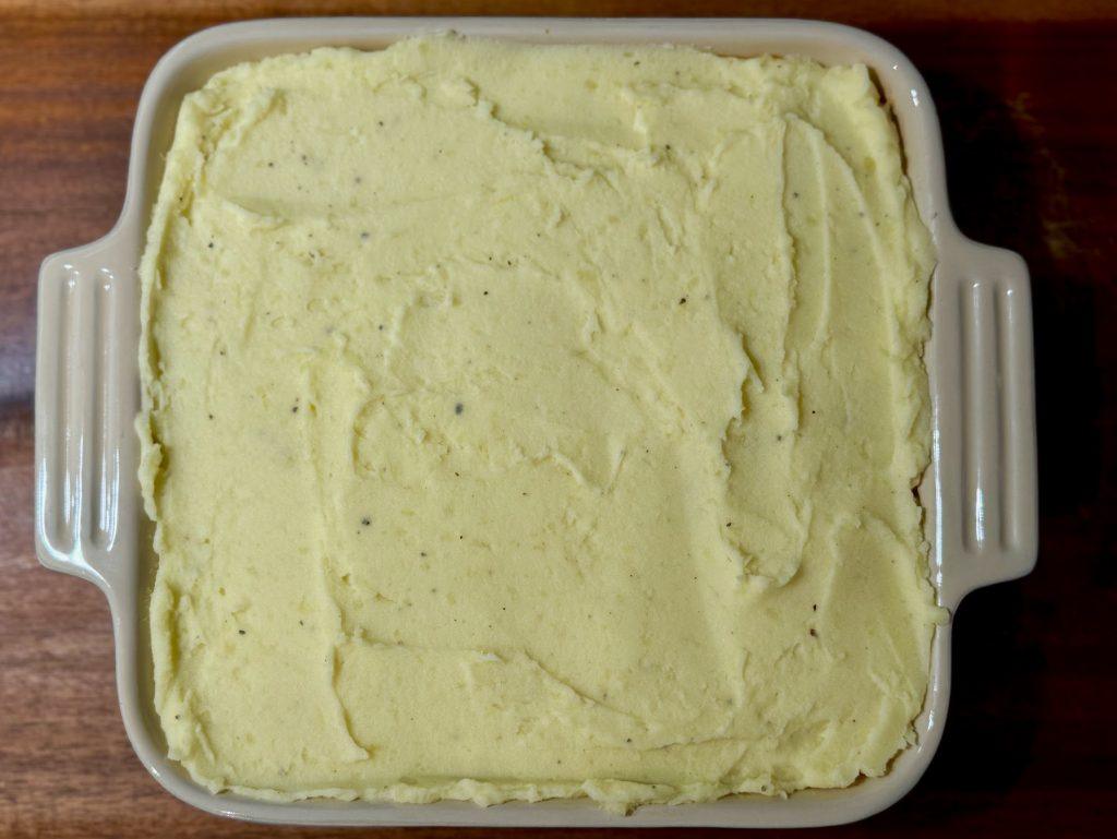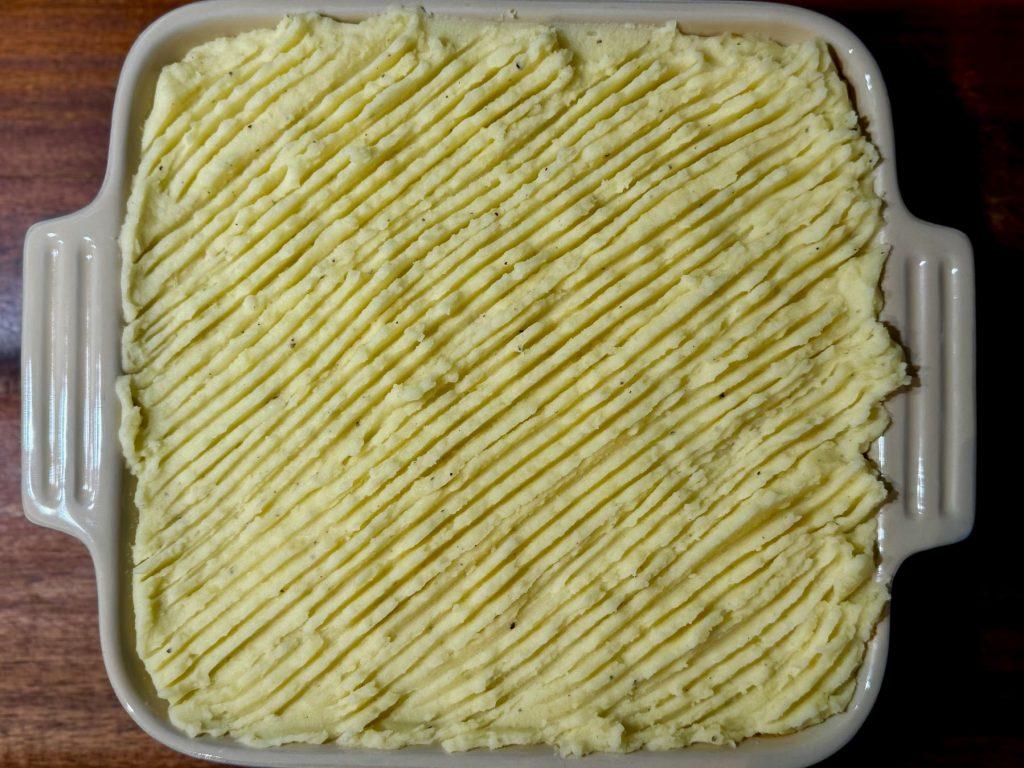 - Score the mash with a fork to create ridges, which will crisp up and brown nicely.